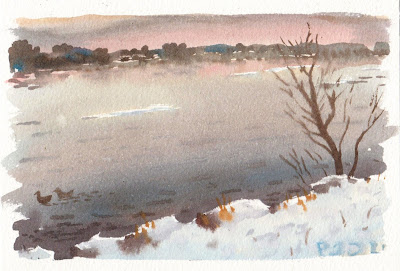As I thought about my painting year in review, this one kept coming to mind. It was an unassuming scene of a highway overpass near Mount Royal that I painted in deep snow. The technical difficulty was high, and the results were wonderful. The delicate lilac shadows curving across the embankment, the little splash of cyan blue in the sky, the delicate wisp of snow blowing across the surface... the painting recreated a tangible atmosphere. The overpass you see was leveled and reconstructed, so this is a historical view now. If you click on that link, you will also see what I think is the most entertaining blog I wrote all year, the visit to M2!