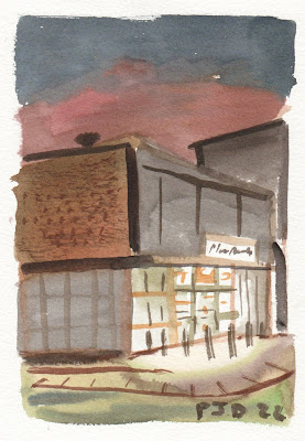 PJD at PJD with Tree, watercolour 5 x 7" cold press, April 2022 (No. 3098b)